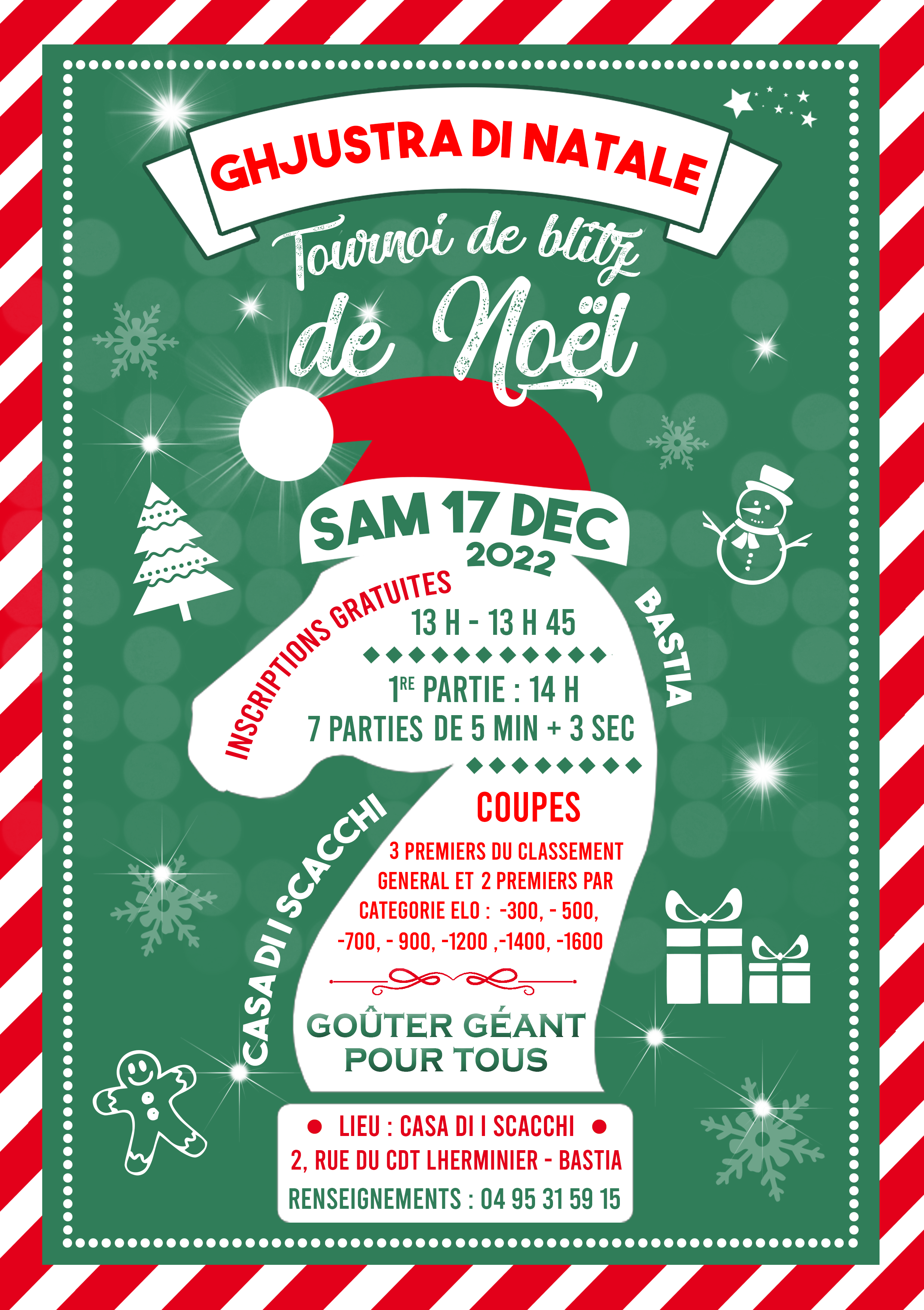 Pendant la période des vacances de Noël propice au partage et à la bonne humeur, venez participer à l'Open de cadence longue du 20 au 23 décembre avec plein de lots à gagner ! Mais aussi aux différentes animations et activités proposées par le club.